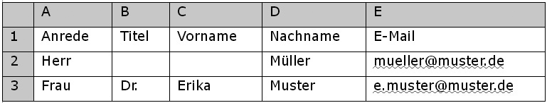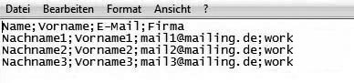 Maybe you have already collected email addresses to which you want to send a newsletter. No matter in which database these information are stored – you only need to save them in a CSV file (for example with Excel) and import them mail@onlinedesign.eu. You can pack your CSV file as a zip to accelerate the uploading of large files. That's how it works:In the first line of the table, there should be field names – first name, surname, email address etc. An example: |