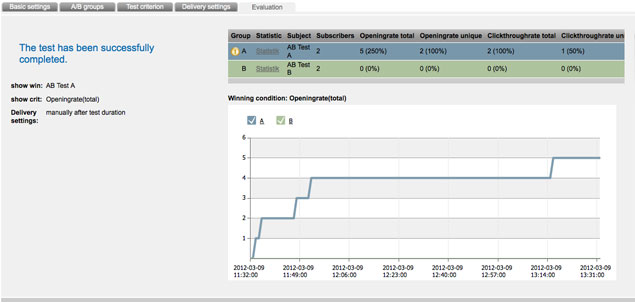 Now all necessary adjustments for your A/B test have done and you can activate it. As soon as you have activate the A/B test your A/B mailings will be sent to your real subscribers. So make sure that all criteria have been completed correctly.